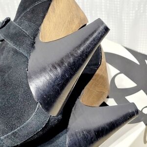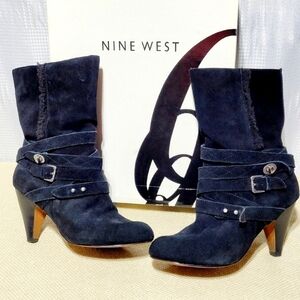 Nine West Black Suede & Strappy Mid-Calf Heeled Pull On Style Boots (9M)