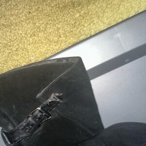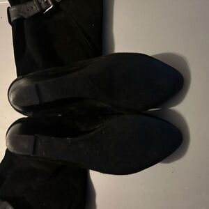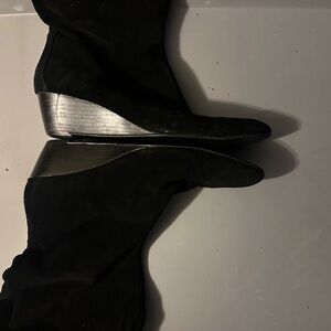 Chic black suede wedges with a stylish buckle. Perfect for versatile wear.