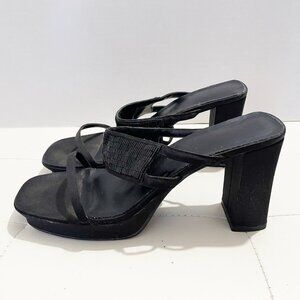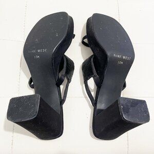 Nine West Black Vintage Block Heels Sandals w/Strap Embellishments | Size 10M