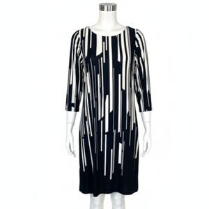 Nine West Black White Abstract Geometric Art Deco 60s Go-Go Mod Shift Dress Sz 4