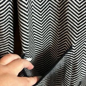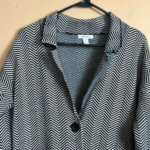 Nine West Black & White Chevron Print Button Up Longline Cardigan Sweater XS