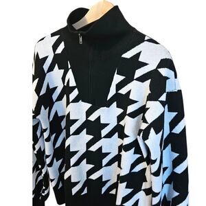 Nine West Black White Houndstooth Half Zip Sweater Women’s Size L