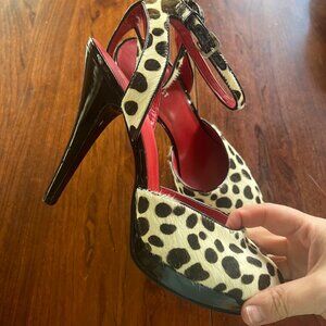 Nine West Black & White Leopard-Print Heels With Red Interior Womens Size 10M Fa