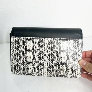 Nine West Black White Snakeskin Foldover Convertible Clutch Crossbody Bag