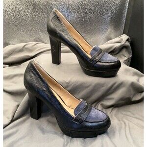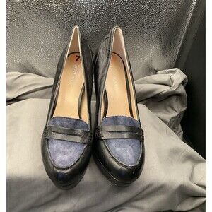 Nine West Black With Blue Suede Stiletto Block Heel WN BADGET J 7M~Gently Used