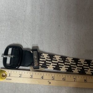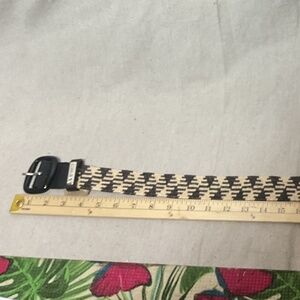 Used - good condition- Stretchy Design with Retro Buckle 🖤 Enhance your style with this unique woven belt featuring a chic black and off-white/cream/tan color combo! Designed without traditional belt holes, it offers extra adjustability and comfort thanks to its stretchy woven material. The retro black belt buckle adds a fun touch, making this belt perfect for pairing with dresses, jeans, or layered looks. Keywords: woven belt, adjustable belt, black and cream belt, stretchy material, retro buckle, fashion accessory, statement belt. ✨ Elevate your outfit with this versatile and stylish accessory! ✨