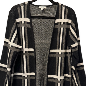 Nine West Black and Gray Plaid Open Front Long Duster Cardigan