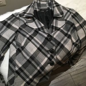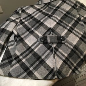 Nine West Black and Gray Plaid Wool Swing Coat
