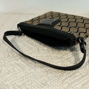 Stylish and versatile, this Nine West wristlet features a chic black and tan design. Perfect for carrying your essentials with ease and elegance.