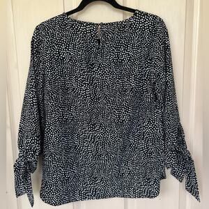 Nine West Black and White Blouse with Sleeve Ties Blouse | Size Small