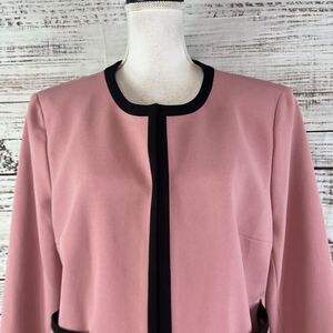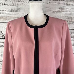 Nine West Blazer Jacket Mauve Pink Black Open Front Career Professional Church