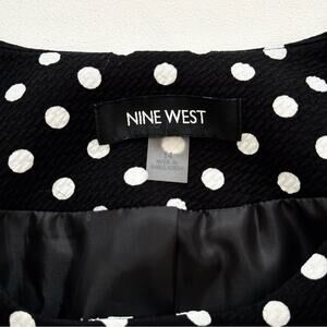 Nine West Blazer Jacket White Polka Dot Snap Front Crew Neck Blazer Size 14