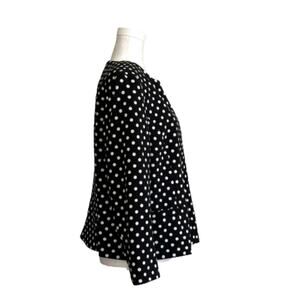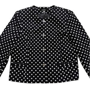 Nine West Black White Polka Dot Collarless Crew Neck Snap Button Front Pockets Blazer Jacket