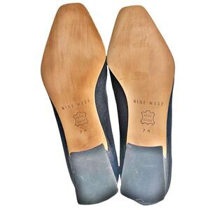 Nine West Block Heel Square Toe High Heeled Shoes Pumps 7 Navy Blue Fabric Upper