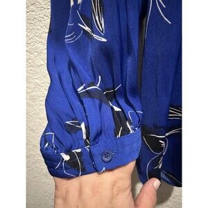 Nine West Blouse 2X Blue Floral V-Neck Boho Career Romantic Flowy Long Sleeve