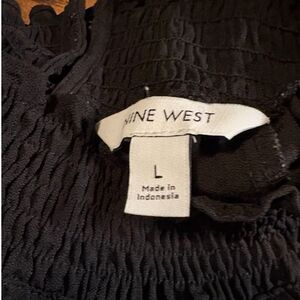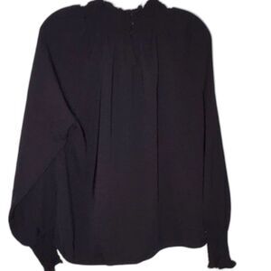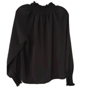 Nine West Blouse L Black Smocked Neck & Wrists Whimsigoth Business Casual Chic
