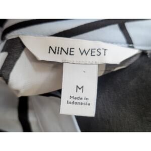 Nine West Blouse Women's Medium White Black Geometric Print Flutter Sleeve Top