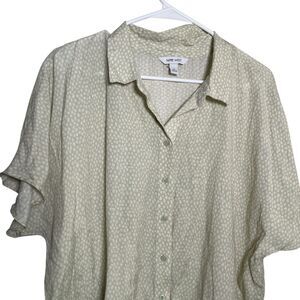 Nine West Blouse Women's XL Sheer Button Up Collared Short Sleeve Boho Top
