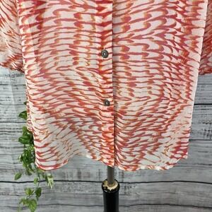 Nine West Blouse size Extra Large Orange Pink Sheer Ruffle Button Front Peasant