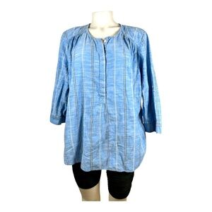 Nine West Blue Lucy Chambray 1/4 Button 3/4 Sleeve Blouse