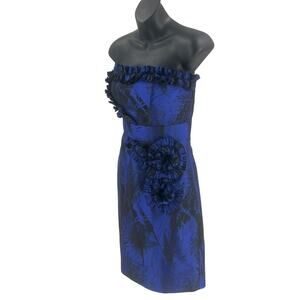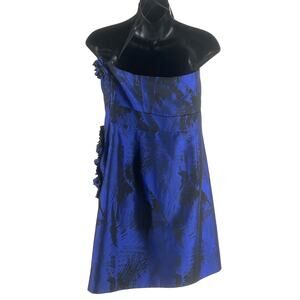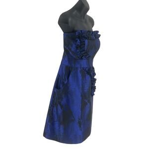 This beautiful Nine West dress is perfect for your next special occasion! The dress is a beautiful blue color and features a strapless neckline. It is made of high-quality taffeta material and even has a pocket for your convenience!
