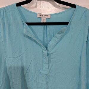 Nine West Blue V-Neck Cap Sleeve Blouse in Size XXL