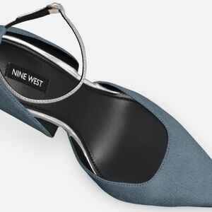 Step out in style with these elegant blue heels from Nine West. Perfect for any occasion, these shoes offer both comfort and sophistication.Look trend-right strapping the Finda pump by Nine West. Textured upper finished by a sleek toe front brings an interesting look to this heeled sandal made adjustable by an ankle buckle closure.