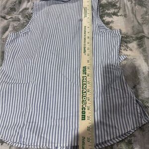 This elegant blouse from Nine West showcases a crisp blue and white stripe pattern, enhanced by a stylish tie-front detail.on trend stripes. Great used condition. Smoke free home