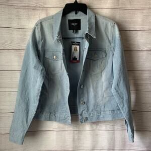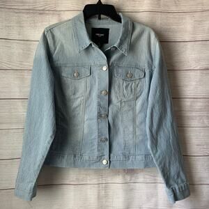 Nine West Blue and White Pisa Stripe Jean Saraj Jacket Button Up Size XL