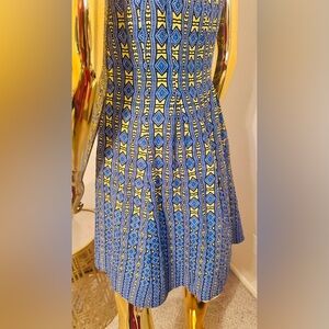 Nine West Blue and Yellow Geometric Patterned Women's Dress, Pre-Loved, Size 8P