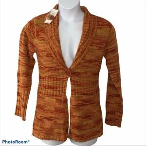Nine West Boho Western Pumpkin Spice Orange Shawl Collar Cardigan Medium NWT