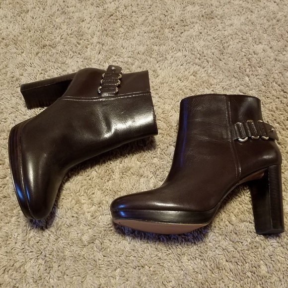 Barely Worn Dark Brown Nine West Women's Kali Leather Platform Booties.