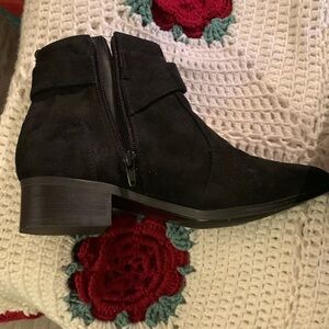 Beautiful black suede booties with silver buckle design. Never worn, perfect condition. No box or tags. Come get these versatile beauties to wear with your favorite fall outfits🙂