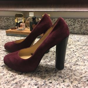 Barely worn, and in great condition. Not in the original box, but they have been protected in a shoe storage container. They're a size 7, but I believe a 7.5 foot would fit comfortably. They have a small midden platform for extra height and a 4" heel