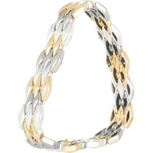Stretch Bracelet: Make a style statement with our elegant and chic intertwined, polished silver, gold and hematite toned stretch bracelet; It is a sleek and modern jewelry piece for all ages and occasions