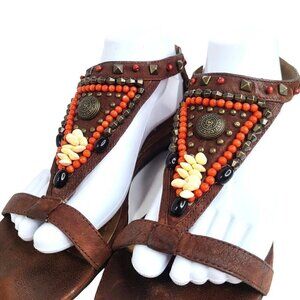 Nine West Brown Beaded Boho Sandals Size: 8.5 In excellent pre-owned condition. From a smoke-free, pet-free home. Fast shipping!