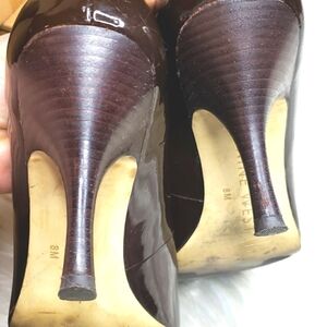 Nine West Brown Heels Size 8 peep toe patent "Alibi"