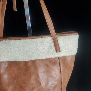 Nine West Brown Leather Shoulder Bag/Purse with FauxFur Sherpa accents