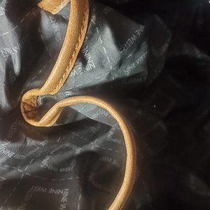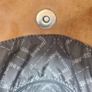 10.5" drop leather handles with Nine West logo bag charm.