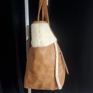Nine West Brown Leather Shoulder Bag/Purse with FauxFur Sherpa accents.