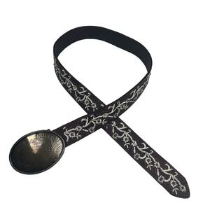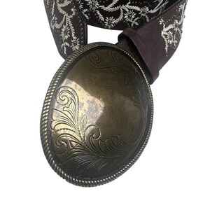 Nine West Brown Leather Studded Floral Embroidered Belt M Oval Buckle Women’s Boho Western