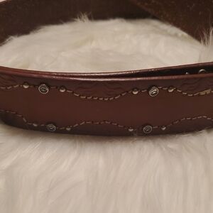 Nine West Brown Leather Western Belt with Silver Buckle