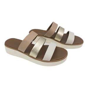 Nine West Brown Metallic Gold White Zoili Leather Platform Mule Sandals size 8.5