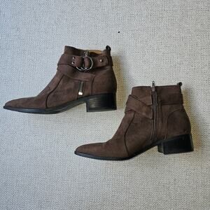 Nine West Brown Suede Feel Pointed Toe Buckle Detail Zip up Ankle Boots 9.5 M