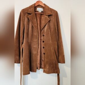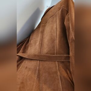 Elevate your style with this elegant brown suede jacket. Perfect for any occasion, this jacket offers both comfort and sophistication.