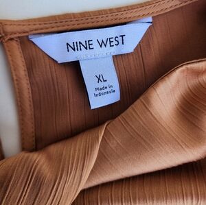 Nine West Brown Tan Womens Boho Sleeveless Satin Knot Detail Textured Top XL A6