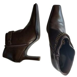 Nine West Brown Y2K Square Toe Ankle Boots Size 7.5 Metal Vintage Boot