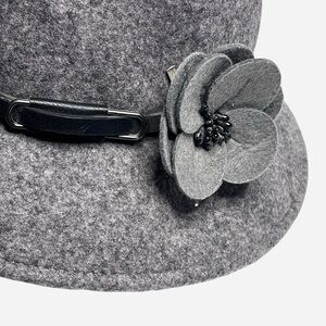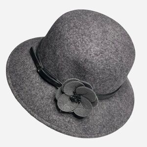 Nine West Bucket Hat 100% Wool Gray Felt Wool Flower Adjustable Band OS NEW