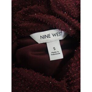 Nine West Burgundy Long Sleeve Textured Keyhole Blouse S, NWT.