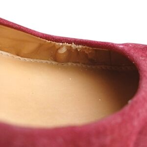 These Nine West flats feature a rich burgundy suede exterior, offering a soft and velvety texture. Designed for comfort and style, they are perfect for any occasion with their simple and elegant look.